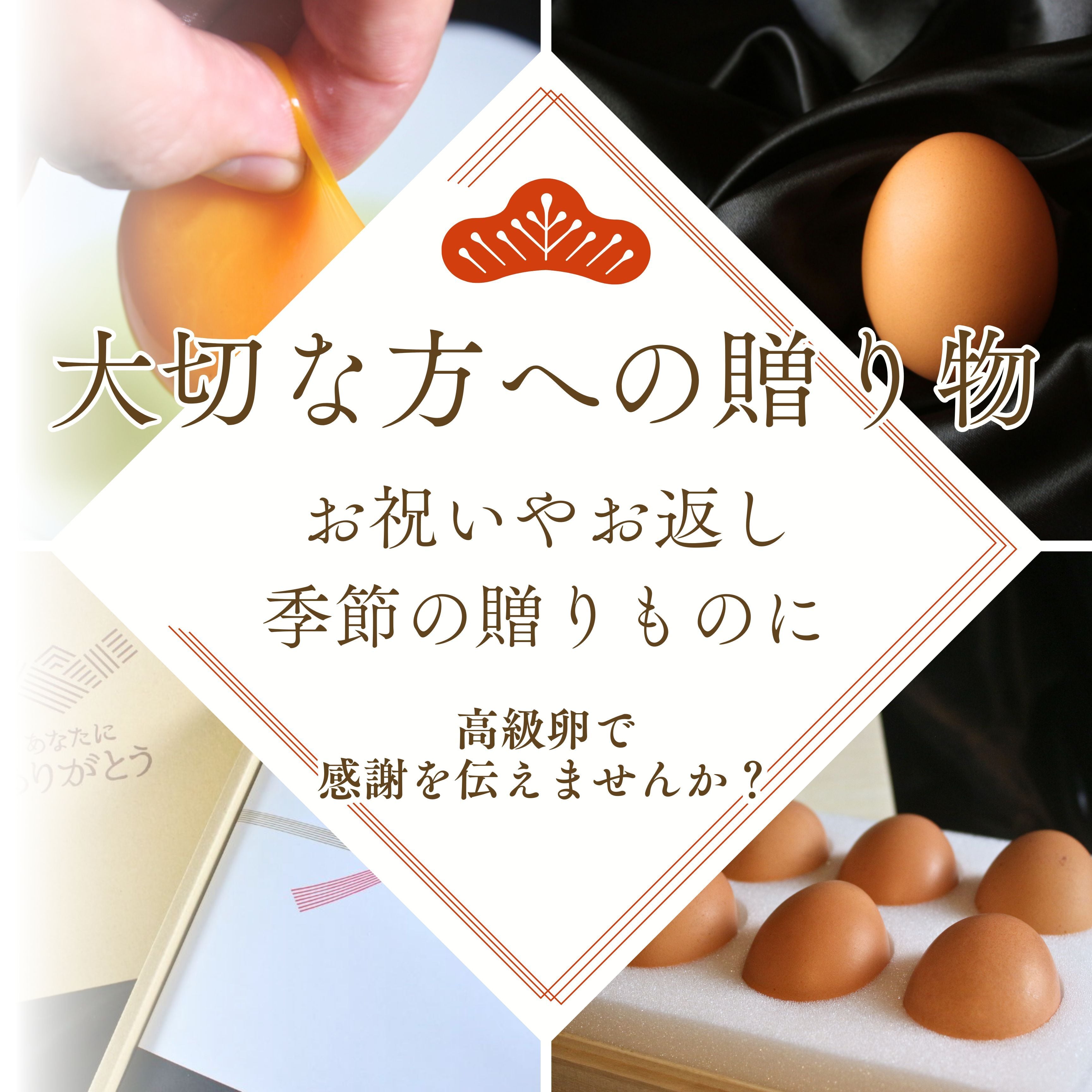 各種お祝いやお中元、お歳暮などの贈り物に。普段食べる卵だからこそ、いつもと一味違う高級卵は贈り物として喜ばれています。各種熨斗の対応も可能です。